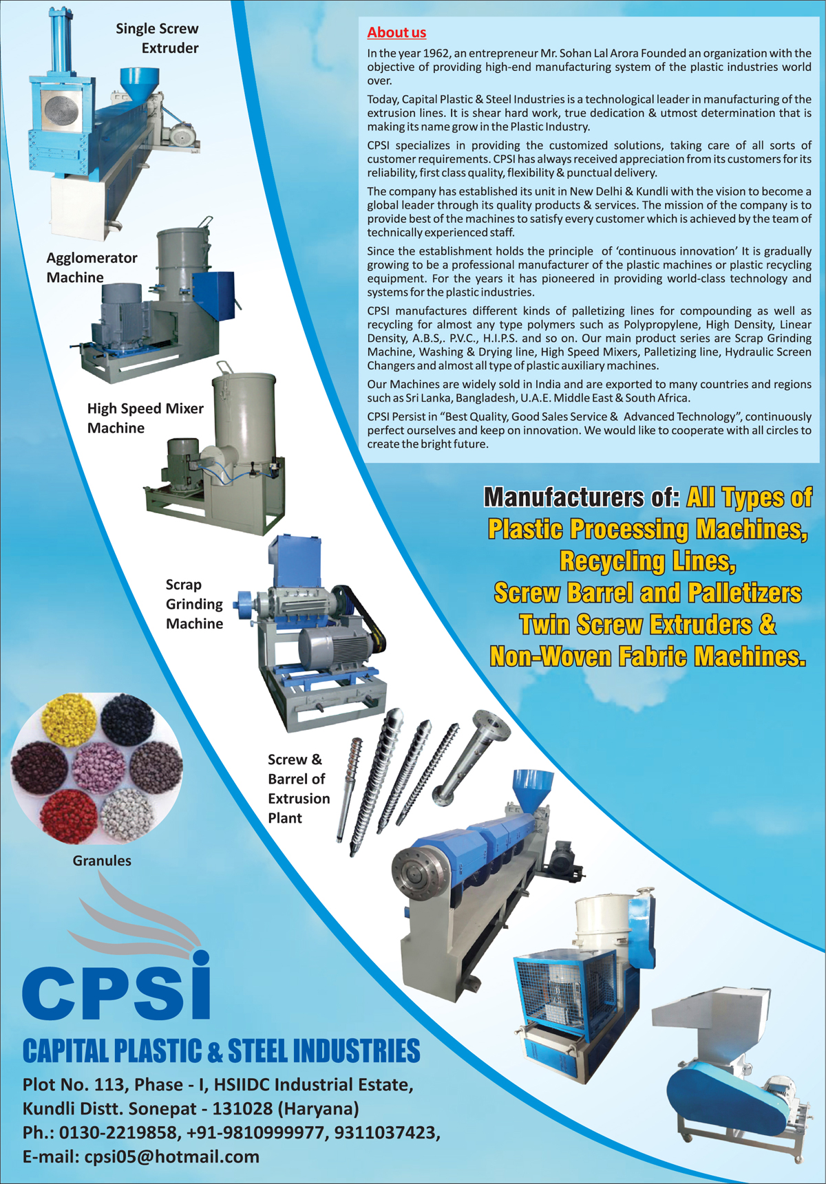 Single Screw Extruder, Agglomerator Machines, Mixer For Plastics, Mixer Machine For Plastics, Scrap Grinding Machines, Scrap Grinder Machines, Extrusion Plant Screws, Extrusion Plant Barrels, Plastic Processing Machines, Recycling Lines, Twin Screw Extruder, Non Woven Fabric Machines, Plastic Washing Lines, Plastic Drying Lines, Palletizing Line for Plastic, Hydraulic Screen Changer For Plastic, Plastic Auxiliary Machines,Extruder, Mixer Machines, Screw Extrusion Plants, Barrel Extrusion Plants, Fabric Machines, Woven Fabric Machines