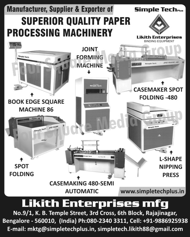 Paper Processing Machines, Joint Forming Machines, Book Edge Square Machines, Casemaker Spot Folding Machines, Spot Folding Machines, Semi Automatic Case Making Machines, L Shape Nipping Press,
