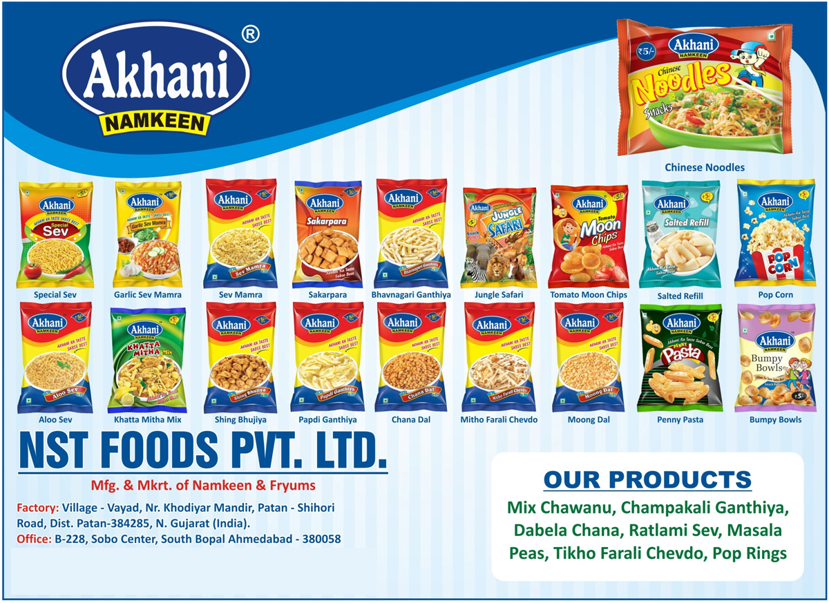 Namkeens, Fryums, Chinese Noodles, Special Sev Namkeen, Garlic Sev Mamra Namkeen, Sev Mamra Namkeen, Sakarpara, Bhavnagari Ganthiya, Jungle Safari Fryums, Tomato Moon Chips, Salted Refill Fryums, Pop Corn, Aloo Sev Namkeen, Khatta Mitha Mix Namkeen, Shing Bhujia Namkeen, Papdi Ganthiya Namkeen, Chana Dal Namkeen, Mitho Farali Chevdo, Moong Dal Namkeen, Penny Pasta Fryums, Bumpy Bowl Fryums, Pop Rings, Tikho Farali Chevdo, Masala Peas Namkeen, Ratlami Sev Namkeen, Dabela Chana Namkeen, Champakali Ganthiya Namkeen, Mix Chawanu