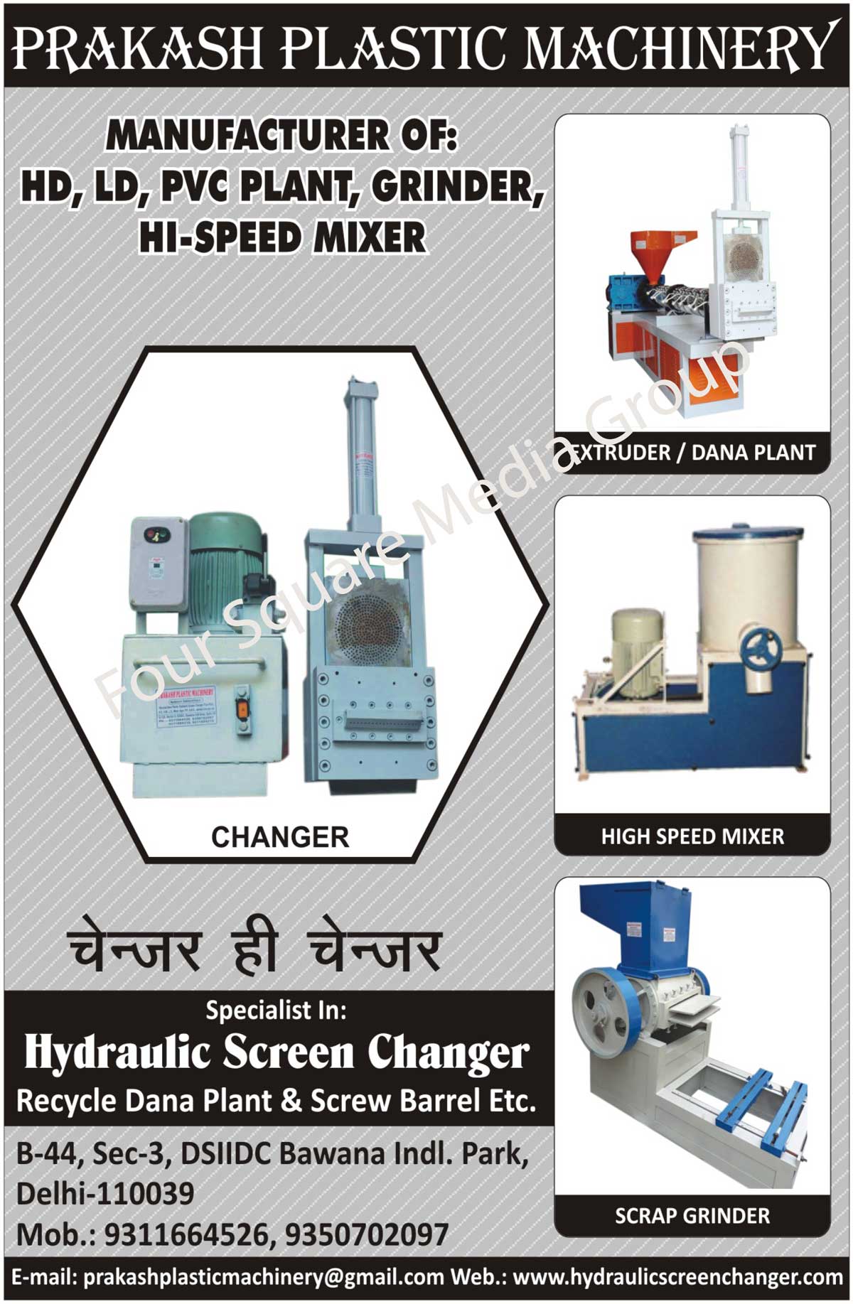 Hydraulic Screen Changers, Plastic Extruder Plants, Recycle Dana Plants, Plastic Scrap Grinders, Traction Units, Helical Gear Boxes, Agglomerators, Screws Diameters, Barrels Diameters, High Speed Plastic Mixers, Stand Cutters, Plastic Washing Machines, Pet Bottle Washing Machines, Jar Washing Machines, HD Plants, LD Plants, PVC Plants, Screw Barrel