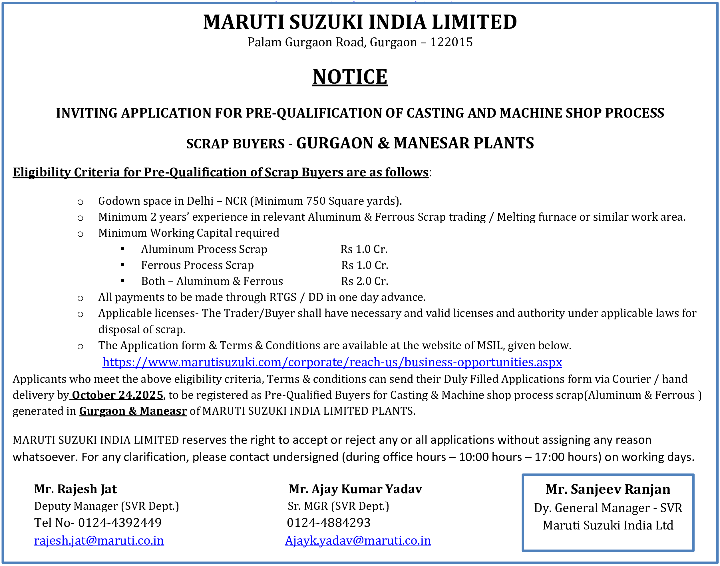 INVITING APPLICATION FOR PRE-QUALIFICATION OF CASTING AND MACHINE SHOP PROCESS